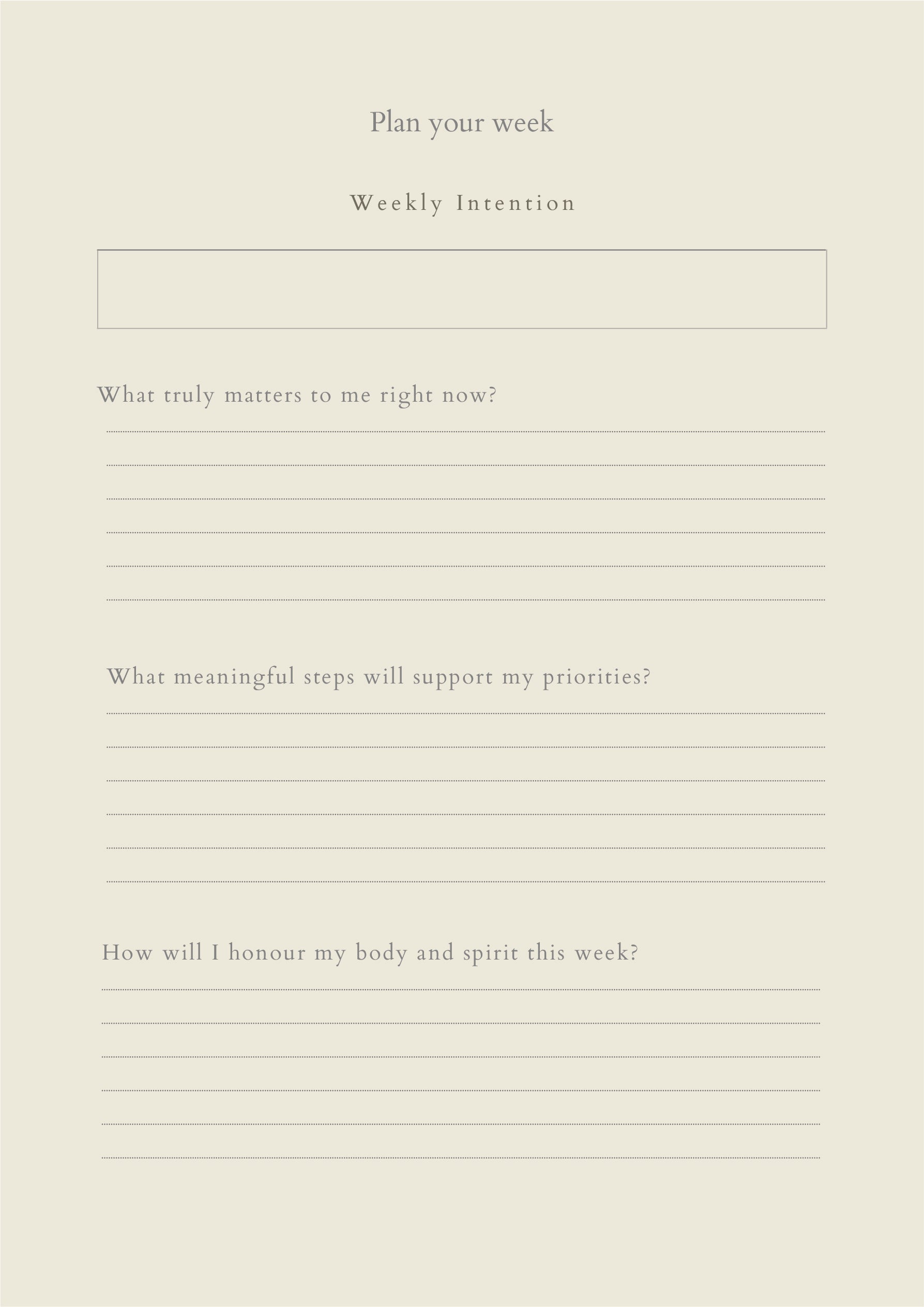 Welcome to the Enso Life Planner, a unique tool designed to help you let go of expectations and embrace the beauty of imperfection in your daily life. The Life Planner equips you with the tools to organise your year by breaking down tasks into months, weeks and days. It has a variety of beginning of the year exercises, monthly in-depth journal prompts, weekly planners and review sessions and mid-year and end of year reflections. Combined with that the planner aims to guide you to track your habits, practice daily gratitude and refine your goals and priorities for the week. If you get overwhelmed by trying to journal, plan and practice wellness habits, the Enso Life Planner is aimed to structure your days.